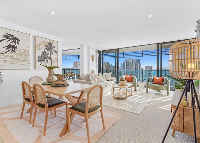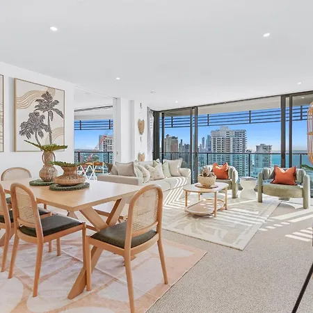 Oracle Resort Lvl 22 Beach Views provides an equipped kitchenette with an oven and a dishwasher for guests. The accommodation is situated 11 km from Varsity Lakes train station and a few moments from Surf Pde at Broadbeach Mall bus station. Other notable features are a terrace, and the pool view from it.